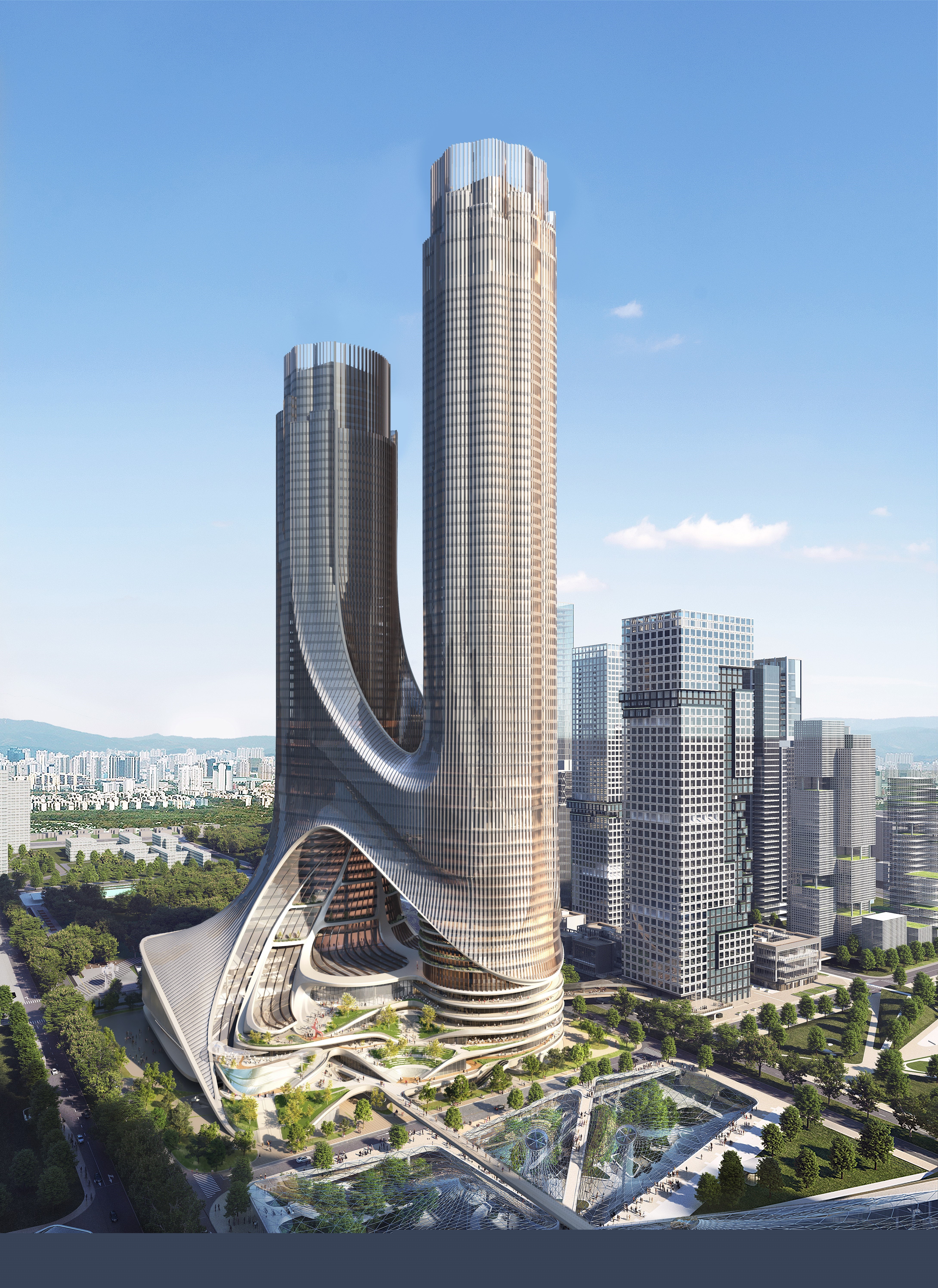 深圳灣超級總部基地是深圳市重點打造的集全球總部聚集區(qū)、都會文化高地、國際交流中心、世界級濱海客廳為一體的未來城市典范。C塔由深圳灣區(qū)城市建設(shè)發(fā)展有限公司承建,位于總部基地“超級十字”中心節(jié)點,是片區(qū)“深灣都市核心”3個超高層地標之一,未來將與A塔、B塔共同構(gòu)建深超總天際線形象。項目占地面積3.6萬平方米,規(guī)劃建造雙子塔樓,樓高395米,總建筑面積44萬平方米,將打造集辦公、商業(yè)、酒店、文化、公共服務(wù)等功能于一體的企業(yè)總部、國際組織和機構(gòu)服務(wù)平臺。